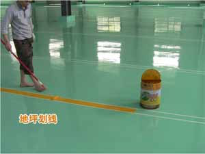 在兩條美紋紙形成的線道中滾涂相應(yīng)顏色的劃線漆。線道顏色最好與環(huán)氧地坪主色不同,并能形成鮮明對比。如綠色的環(huán)氧地坪可用黃色、橙色、白色等顏色的劃線漆來劃線。